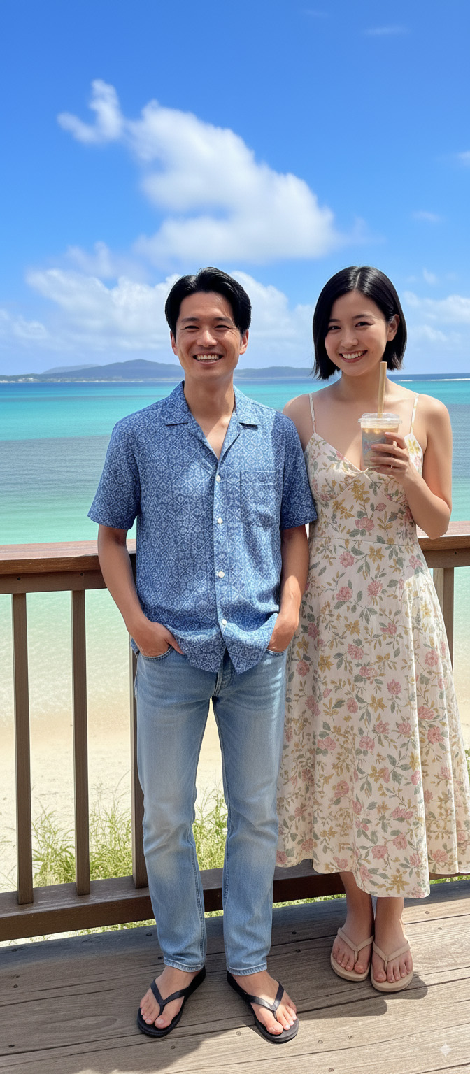 ドリンクを片手にまるで沖縄の海を眺めているような画像が生成されました。